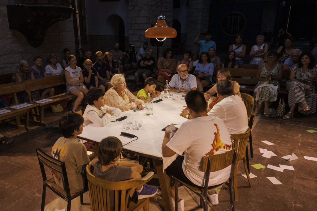 4 parejas de abuelxs y nietxs se encuentran alrededor de una mesa para hacerse preguntas y tener una conversación enfrente del público. El encuentro se estructura mediante preguntas y tiempos de conversación. Las parejas intergeneracionales se preguntan y se interpelan en un juego donde los protagonistas no conocen las preguntas concretas, ni su orden.