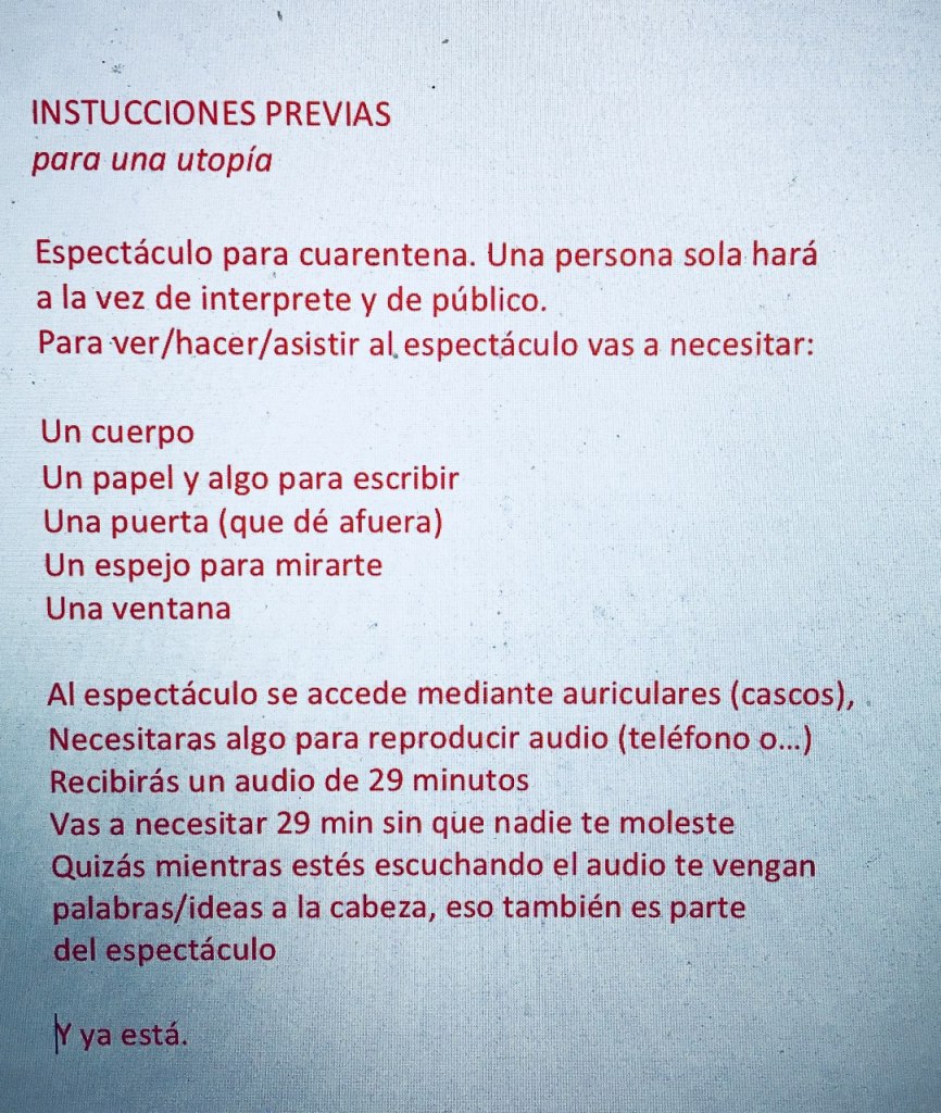Enfrente de esa estrategia y con el deseo de accionar sobre el presente a su vez, nace este espectáculo. Entendiendo lo presente en sus dos vertientes; la temporal, imaginando posibles futuros para actuar sobre Hoy, pero también y quizás más urgente, el estar presente, la presencia física como hecho indispensable para la vida en común. Es un intento de trascender la imposición bidimensional de la vida en confinamiento, de encontrarnos en un lugar con tres dimensiones. Es un intento imposible de volver a juntarse, de recordar un encuentro físico, carnal quizás.