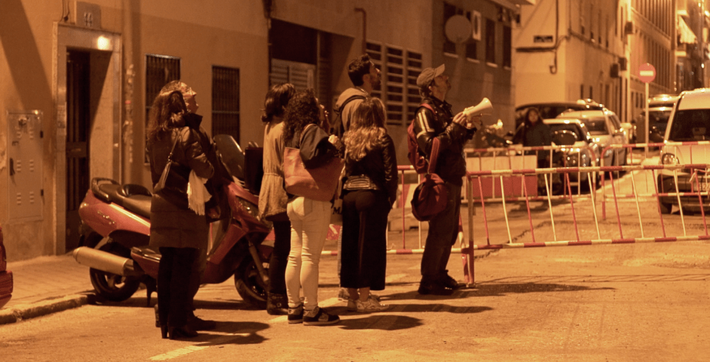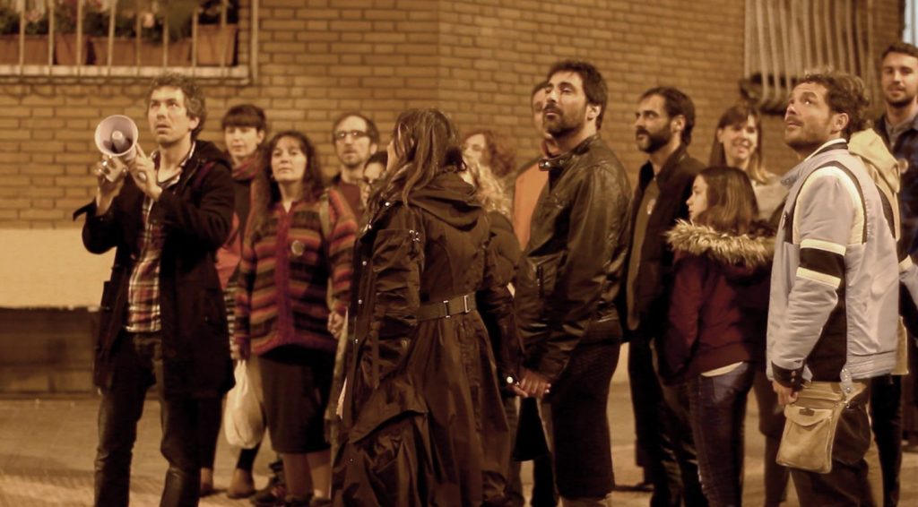 Nos encontrarán dormidos es un paseo-espectáculo que utiliza la ciudad “tal como es” para superponer una narrativa encima de la arquitectura, los habitantes y los eventos incidentales del barrio, difuminando así la línea que divide realidad y ficción.